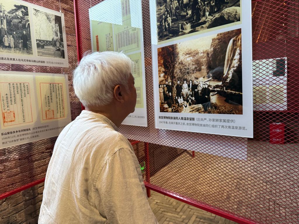 胡昌健驻足观看重庆故宫文物南迁纪念馆里的一张老照片。新华社记者 赵佳乐 摄