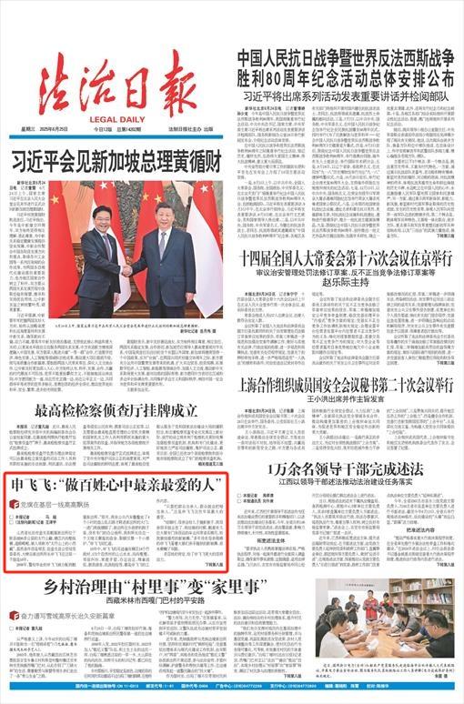 2022年,申飞飞荣获全国“人民满意的公务员”称号。“当时乡亲们听说我从北京回来,就第一时间往派出所赶,非要把奖章拿出来再给我戴一次。”申飞飞自豪地说,“他们说,这个牌牌是国家给的,但他们还想给我再戴一下。国家满意,老百姓更满意。”