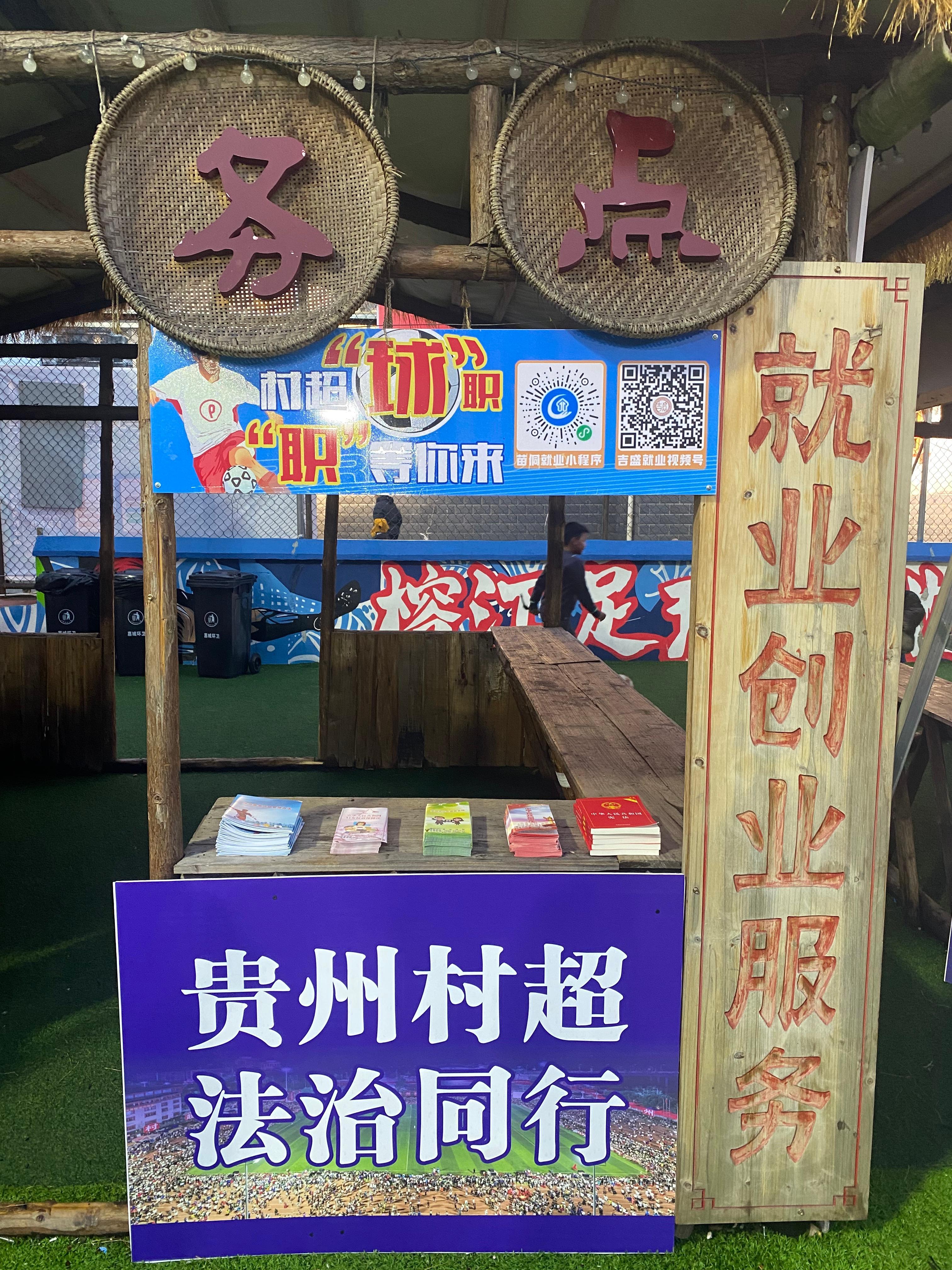 图为“村超”普法现场,展示了各种法治宣传手册。(任锐 邢国涵摄)