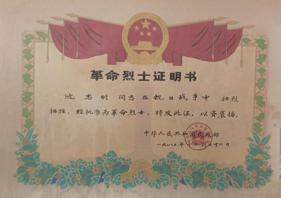 近年来,淮北乃至安徽越来越多人加入到寻找沈忠明的队伍中来:淮北市退役军人事务局通过多方渠道陆续找到了沈忠明的烈士申报档案、材料等;2024年7月,沈忠明的曾孙沈磊等亲属向中国人民抗日战争纪念馆捐赠烈士证;2025年3月,安徽师范大学红色青春守护人工作室的志愿者通过现场写生,依据沈树敏样貌,为沈忠明创作了肖像,并庄重地赠予其家属。“看到这张画像后,我心中的遗憾就弥补了。”沈树敏说。
