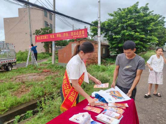 自2013年举办首届“7.8全国保险公众宣传日”活动以来,现已连续举办13年,得到行业内外广泛赞誉,成为保险行业的文化名片,也成为公众认识保险、了解保险、贴近保险的关键性节点。为在农村普及保险知识、提升村民保险意识、树立保险行业良好形象,平安产险临高支公司组织志愿宣传人员来到临高县临城镇龙力村开展“爱和责任 保险让生活更美好”宣传活动。