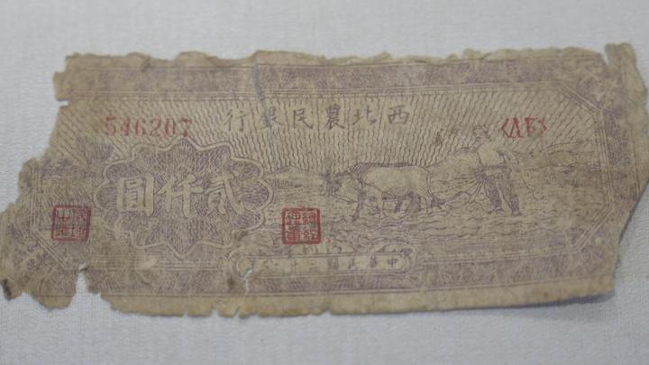 图为西北农民银行发行的纸币,面额为2000元。新华社记者 原勋 摄