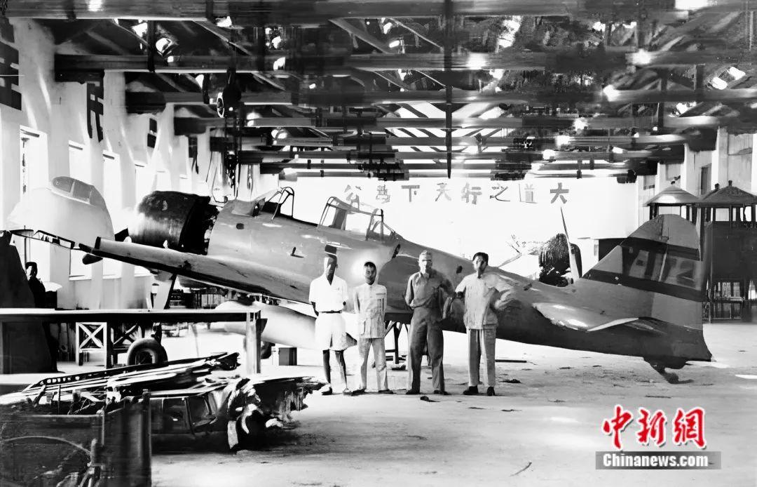 1942年,柳机工程师支援美国飞虎队修理俘获的日本零式战斗机。刘丽虹提供