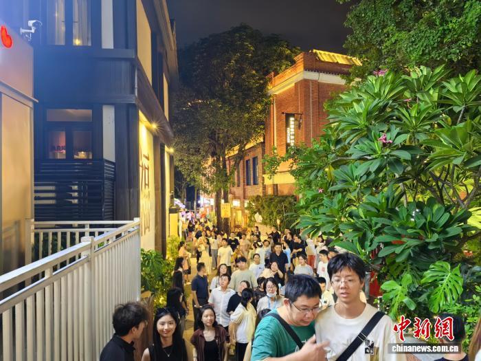 8月23日晚,福州烟台山历史风貌区的街巷内游人如织。 中新网记者 闫旭 摄