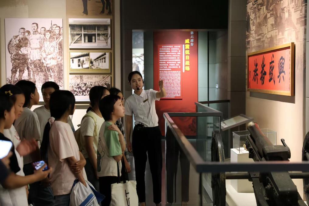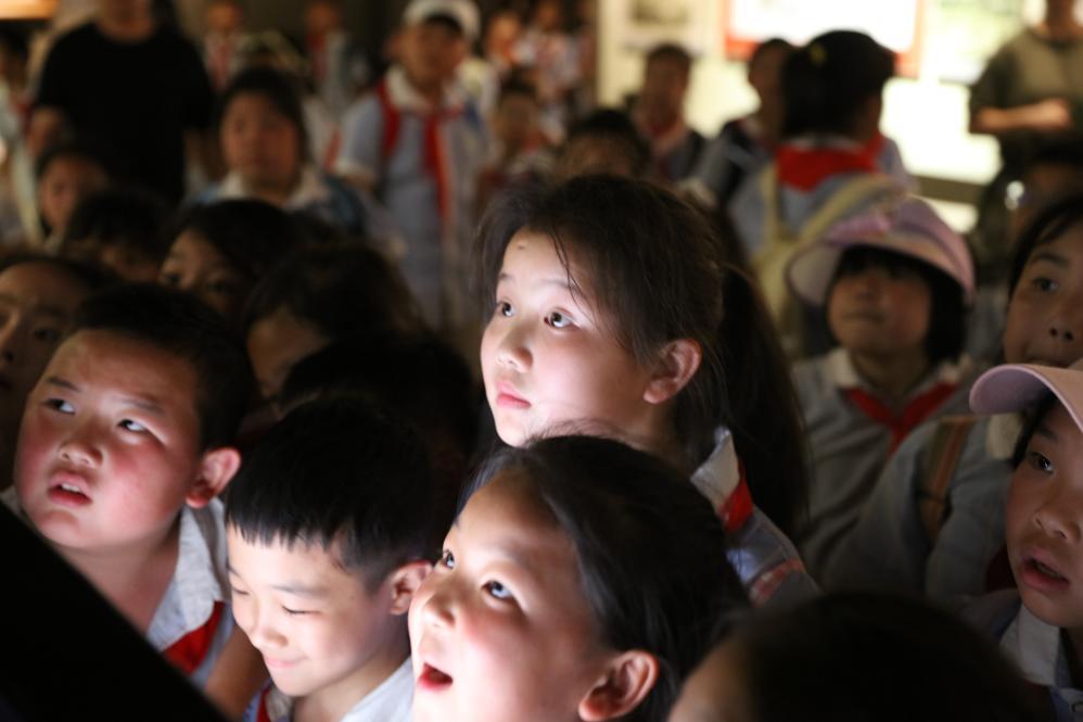 学生们在贺龙纪念馆听讲解员讲述红色历史。新华社发