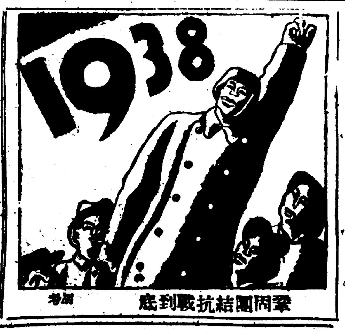 图为1938年1月11日,《新华日报》创刊号刊登胡考创作的《巩固团结抗战到底》。