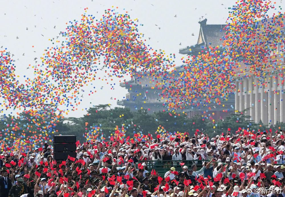 和平鸽展翅高飞,彩色气球腾空而起!回望峥嵘的血火岁月,让我们以山河为证、以日月为铭,共同见证,英雄的中国人民永远不屈,和平的阳光永远灿烂!让我们为胜利喝彩为祖国点赞!(记者:张宏祥、费茂华、江文耀、周荻潇、牟宇)