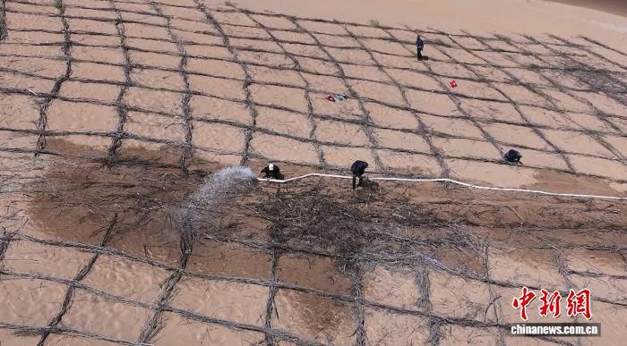 “刚开始治理时,到处都是沙丘。风沙大的时候,人只能蹲着,不然沙子打在脸上像针扎一样疼。夏天干活炎热,光膀子得晒掉一层皮,新皮长出来又接着晒,又掉一层,一年至少掉两层皮。”项目负责人宫宏斌回忆起施工的艰辛,仍感慨不已。“种树更是难上加难,流沙里树苗很难存活,我们只能种了死、死了再种,反复尝试,才换来如今这满眼的绿色。”