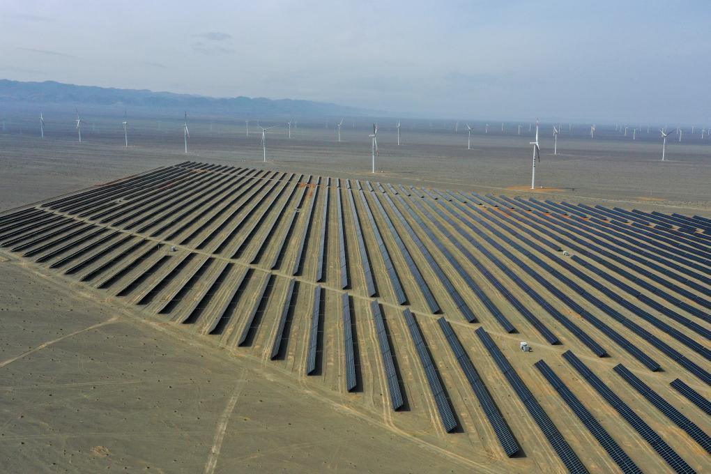 一望无垠的新疆戈壁上,逾百米高风机的叶片缓缓转动,连绵的光伏板在阳光下“漾”起粼粼光纹,超低排放的火电机组平稳运转,与风光能源协同运行。