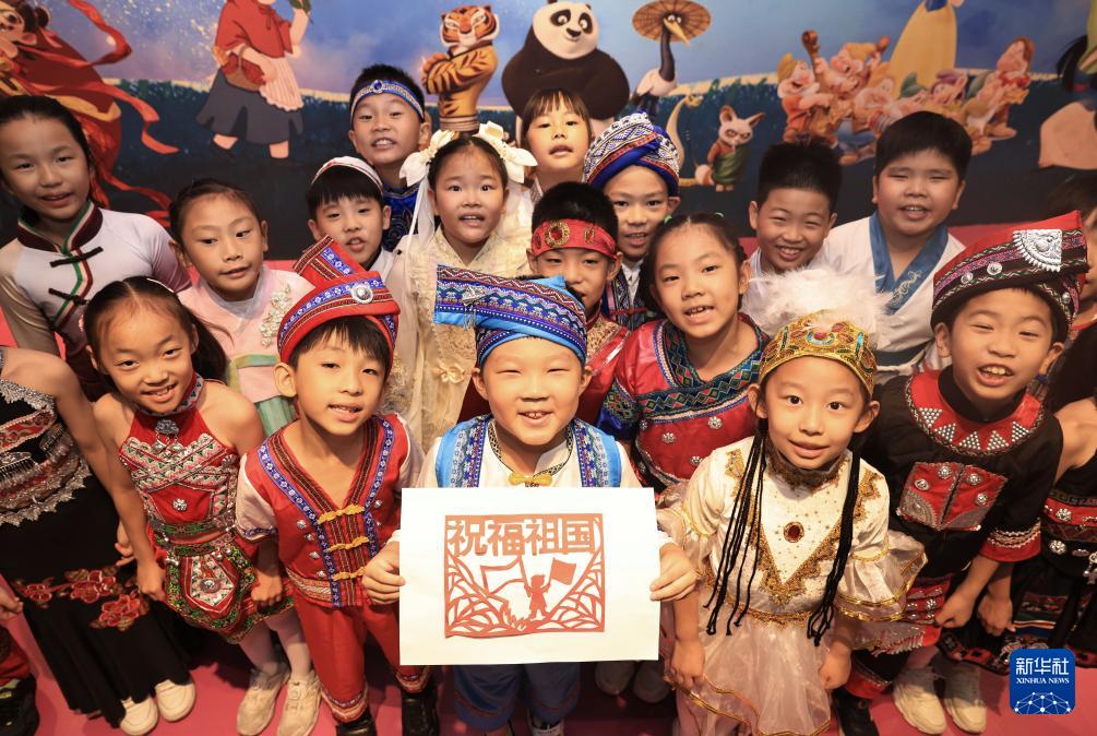 9月25日,在湖北省武汉市,未来实验小学学生开展迎国庆主题活动。