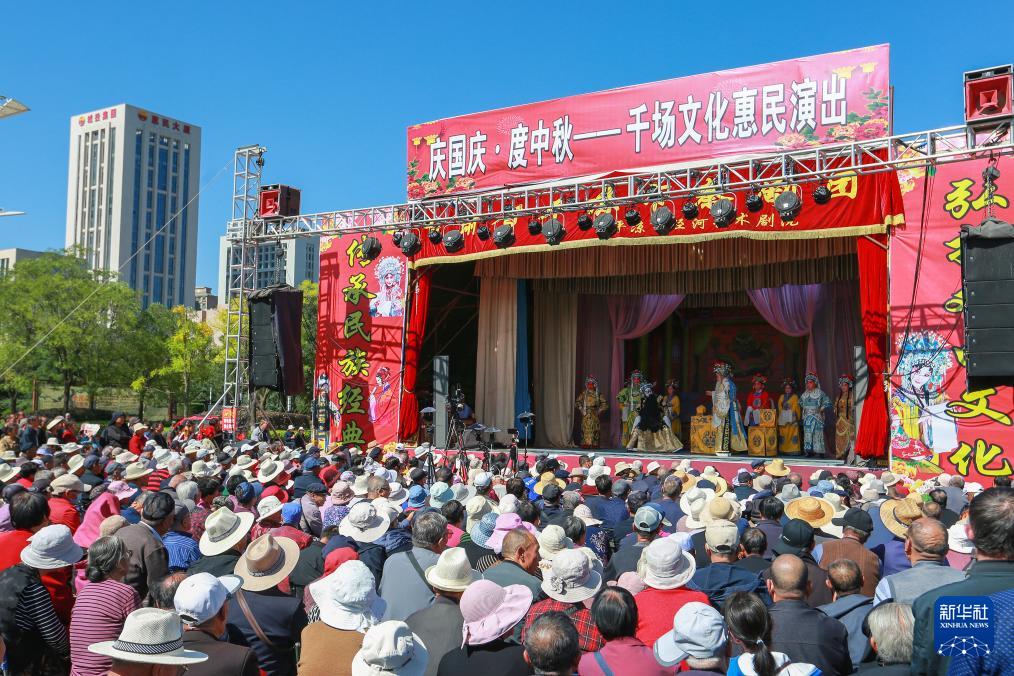 9月24日,在甘肃省平凉市绿地广场,演员在“庆国庆·度中秋”戏曲文化惠民演出现场表演。