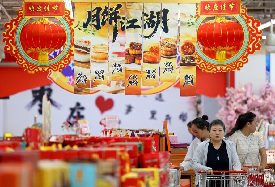 2025年9月26日,北京市某商场的月饼销售区。新华网记者陈凯茵 摄