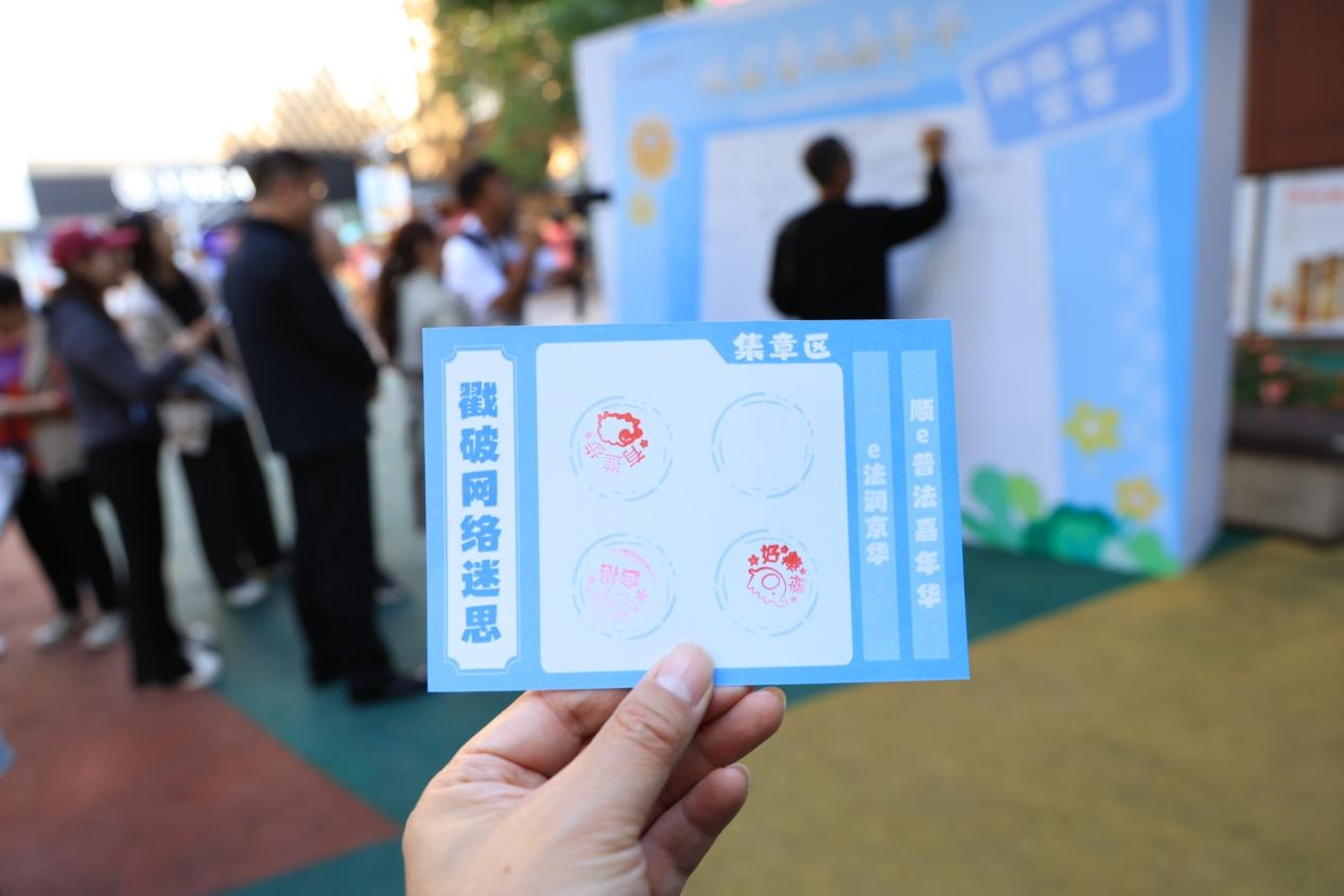 10月14日,“顺e普法嘉年华”网络普法活动在北京市顺义区祥云小镇文旅街区启幕。“网购维权小屋”前,市民们正驻足答题;“法治飞行棋”区域内,游客们围在彩色棋盘旁跃跃欲试。这场将网络普法融入休闲生活的特色活动,让法治知识悄然传播。