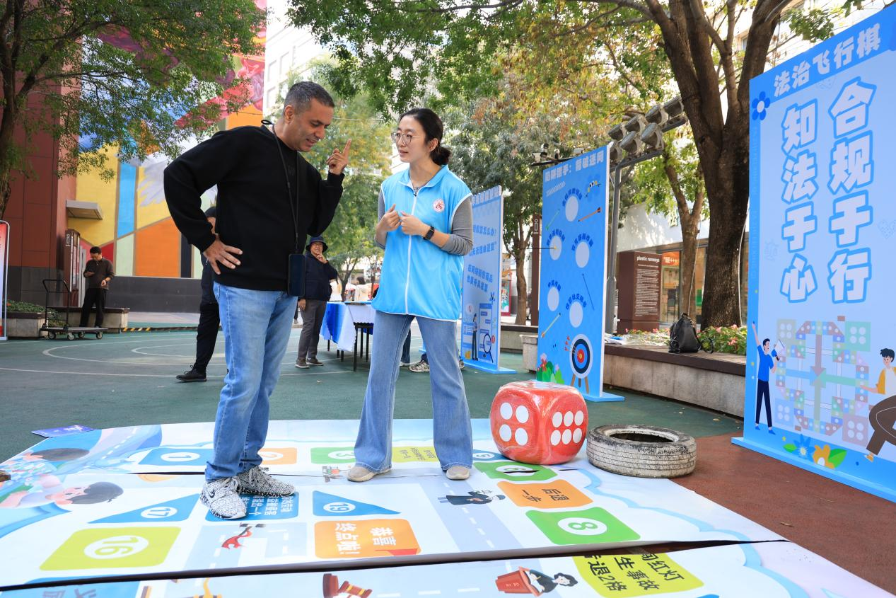 外籍居民参与“法治飞行棋”互动。王远征 摄