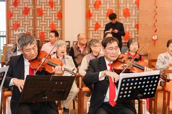 随后,由上海壹棵松公益基金会支持的齐乐乐队为现场的老人们带来了精彩演出。悠扬的旋律里,老人们或轻声跟唱,或鼓掌打拍,在歌声中展露笑颜,现场充满温情与欢乐。活动尾声,全场合唱《最美夕阳红》,用歌声传递着对晚年生活的美好祝愿,为此次活动画上圆满句号。