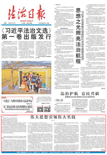 伟大时代孕育伟大思想,伟大思想引领伟大实践。习近平法治思想源于实践,更在实践中彰显磅礴伟力。五年来,在习近平法治思想引领下,亿万人民坚定信心、步调一致,纵深推进全面依法治国实践,法治中国建设开创了新局面。