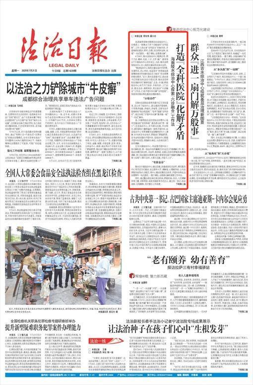 “推进综治中心规范化建设是时代所需、发展所系、民心所向,也是筑牢‘热带海岛滨海精致城市和创新创业活力城市’安全屏障的现实需求。”近日,陵水县委副书记、政法委书记李夏告诉《法治日报》记者,陵水县坚持和发展新时代“枫桥经验”,在县、乡(镇)两级综治中心实行开门坐诊、专家约诊、上门出诊、联合会诊、顽疾转诊、常态复诊“六诊融合”工作法,打造矛盾纠纷化解“全科医院”,探索具有陵水特色基层治理新路径。