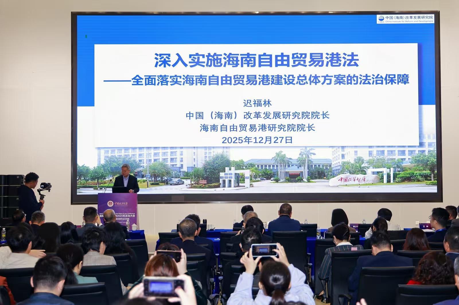 12月27日,海南自由贸易港2025年法治大会于海口召开。大会由中国政法大学、江东新区管理局主办,中国政法大学海南自由贸易港法治研究院/海南国际学院、中国政法大学法律学院承办。大会创新设立“专家五人谈”环节,中国(海南)改革发展研究院院长、海南自由贸易港研究院院长迟福林出席并发言。
