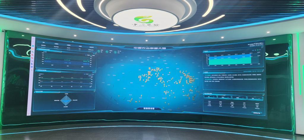 “中原农谷数智大脑”的大屏幕上,显示着各种数据。(受访者供图)