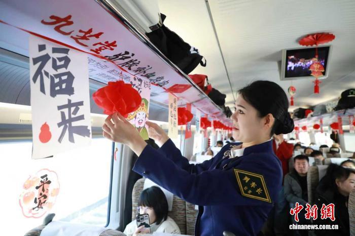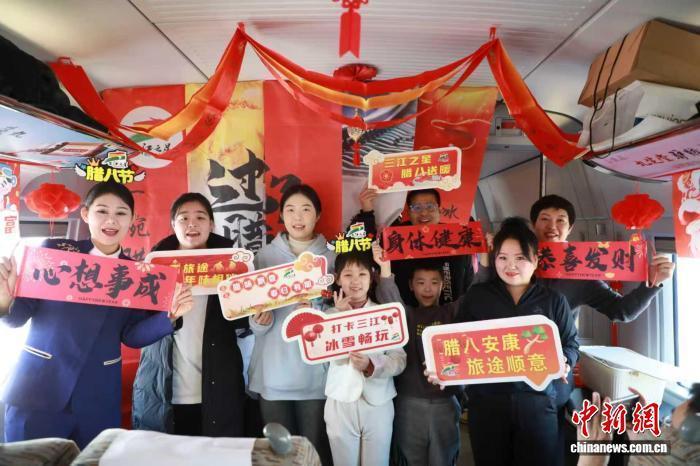 腊八节来临,G3510次列车车厢内装饰着红色窗花与福字,节日气氛浓郁。列车工作人员向旅客送上热腾腾的腊八粥并致以节日问候,小旅客们也收到了特色糖果礼物。