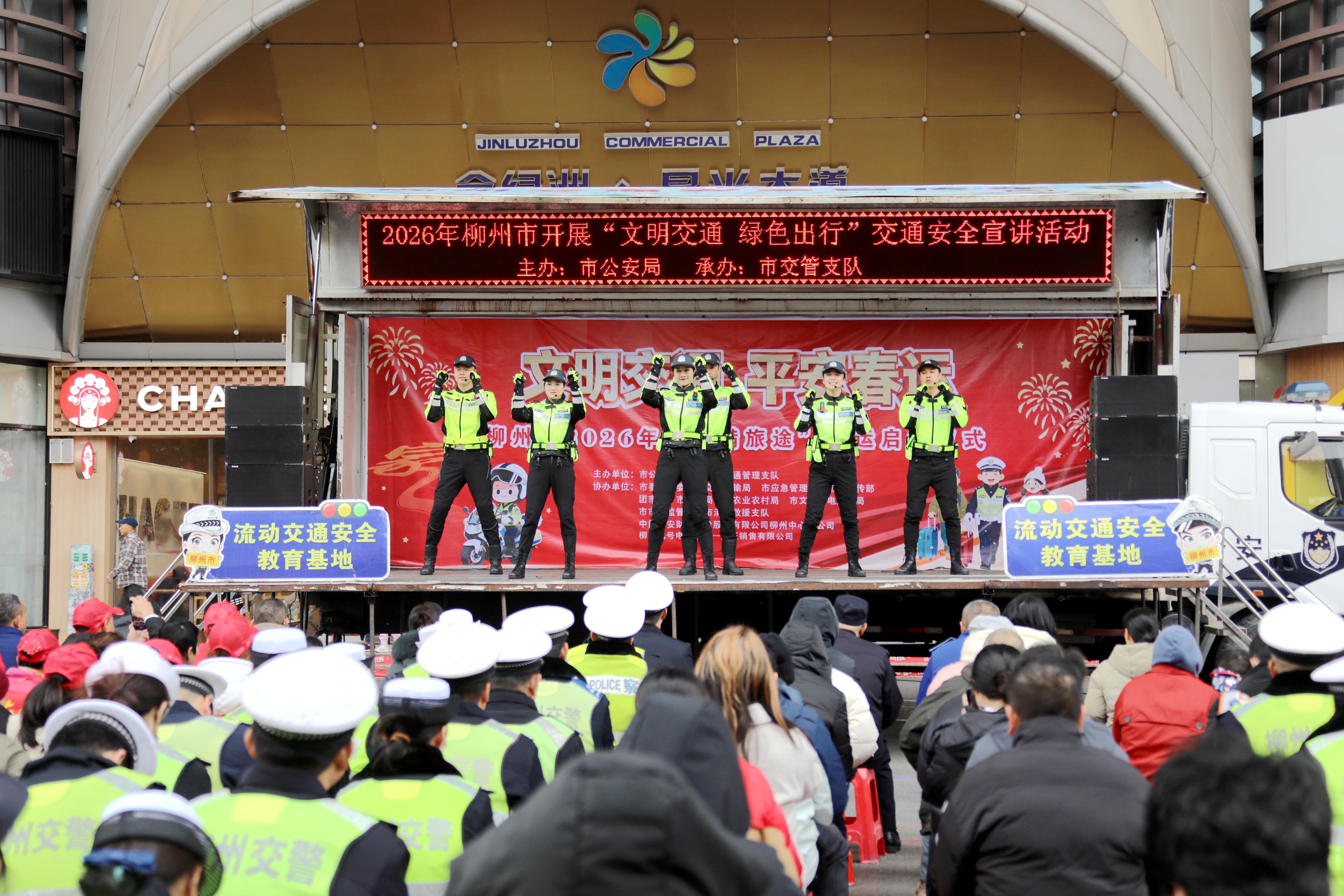 柳州市公安局交管支队组织交通安全宣传小分队,通过宣讲展演、互动问答等方式,向群众传递交通安全知识。