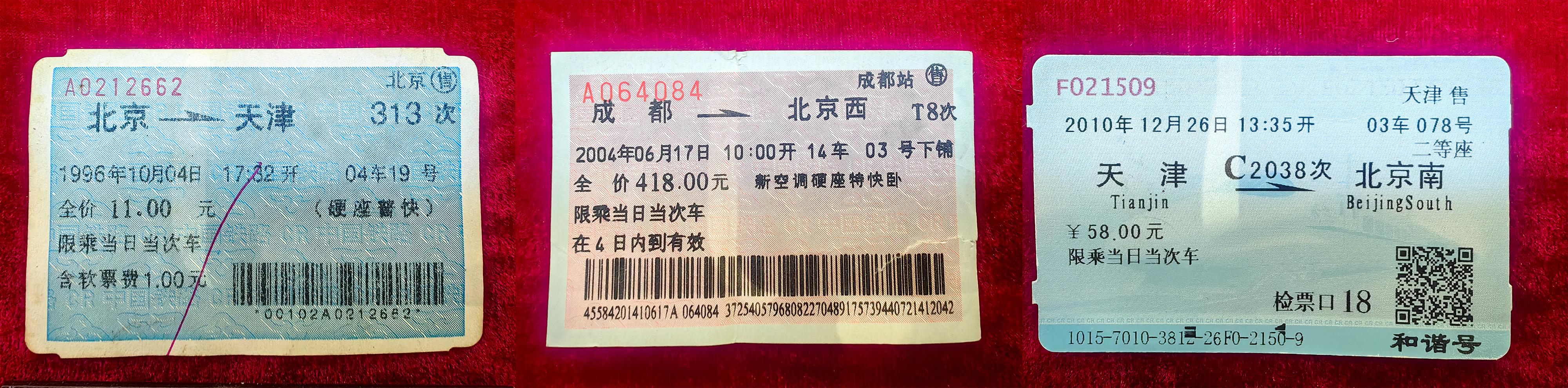拼版照片,1996年、2004年、2010年的纸质火车票。(中国铁路太原局集团有限公司供图)