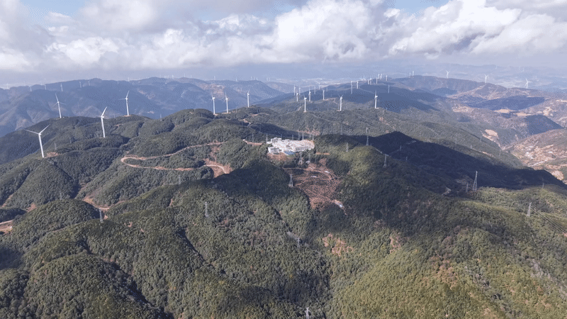 在云南省楚雄彝族自治州姚安县海拔2700米的保顶山,一座风电场静静矗立在云雾之中。