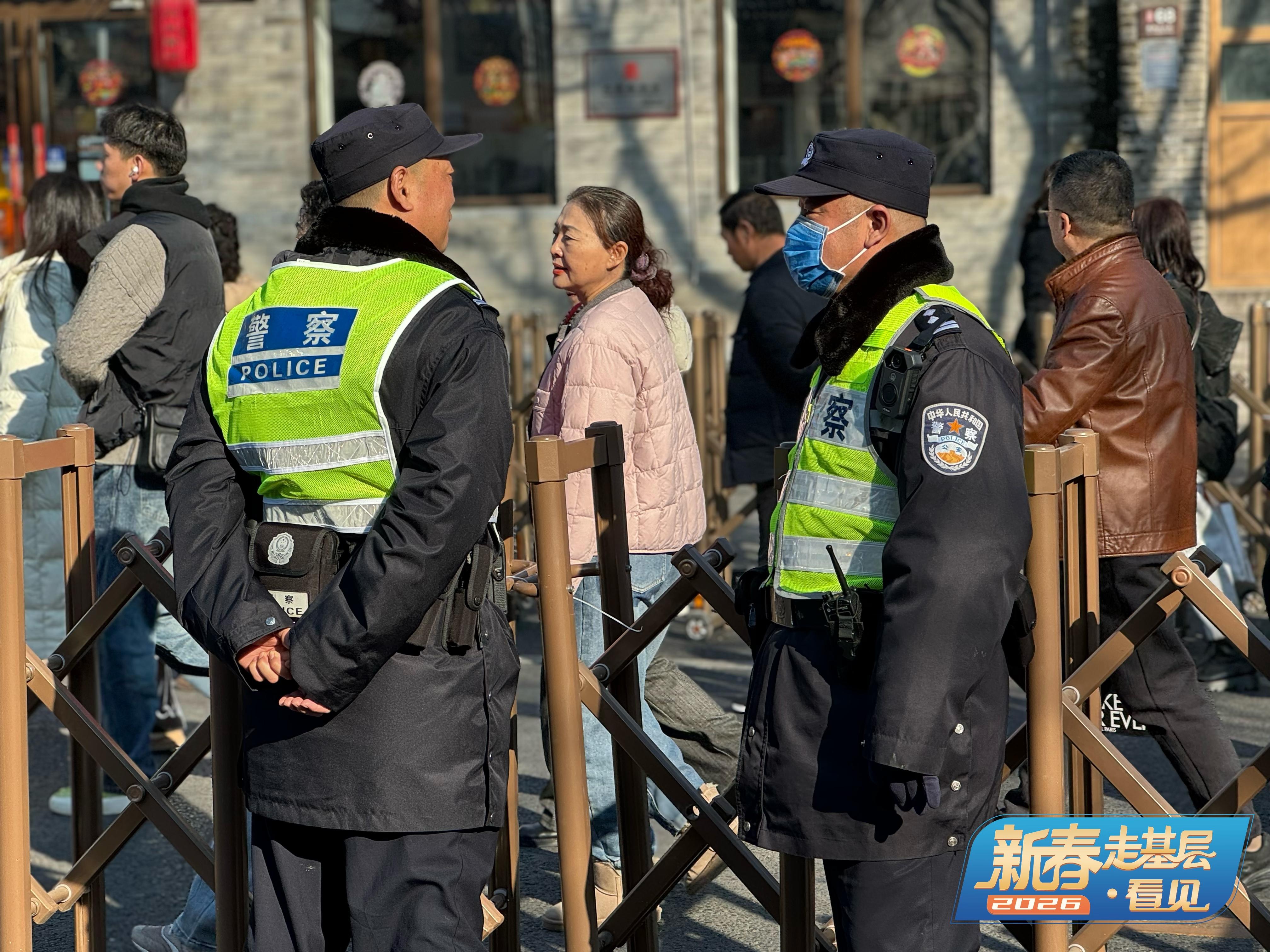 现场,祈福群众络绎不绝,民警们身着制服穿梭在人群中,全程值守。他们耐心引导排队动线、及时解答群众咨询,柔性疏导与规范执法并举,定点值守与动态巡控结合,警方科学分流、快速响应,有效化解大客流压力,确保现场秩序平稳有序。