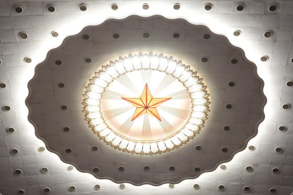 3月5日,十四届全国人大四次会议开幕会即将在北京人民大会堂举行。这是人民大会堂内景。