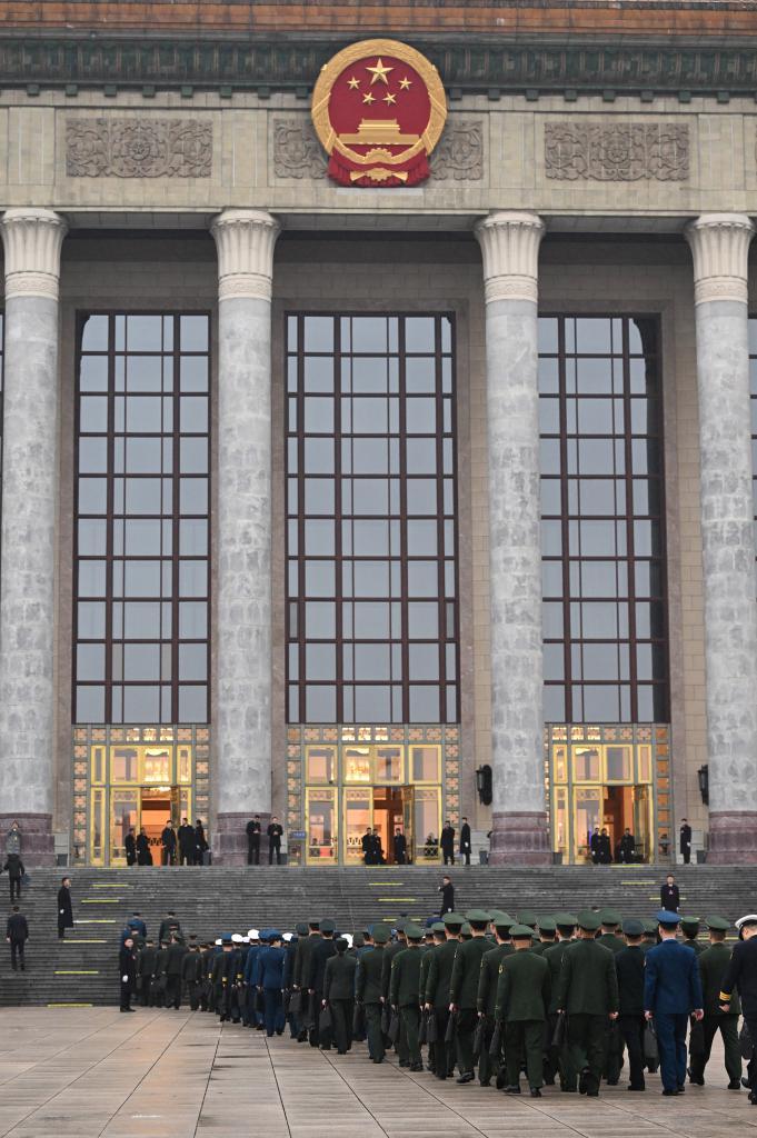 3月5日,十四届全国人大四次会议开幕会即将在北京人民大会堂举行。这是全国人大代表走向会场。