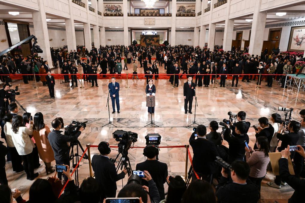 3月7日,全国政协十四届四次会议第二场“委员通道”集体采访活动在北京人民大会堂举行。