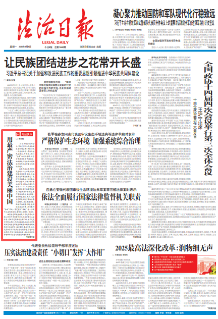 在今年的全国两会上,审议《中华人民共和国生态环境法典(草案)》是一项重要议程。其作为继民法典后,中国第二部以“法典”命名的法律,对于全面推进美丽中国建设、加快推进人与自然和谐共生的现代化具有重大而深远的意义。