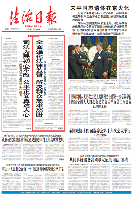 代表委员们的热议与建言,凝聚了共识,汇聚了智慧,将推动检察机关在“十五五”开局之年进一步协同法治与改革、发展、稳定,更加注重保障和促进社会公平正义,不断深化习近平法治思想的检察实践。