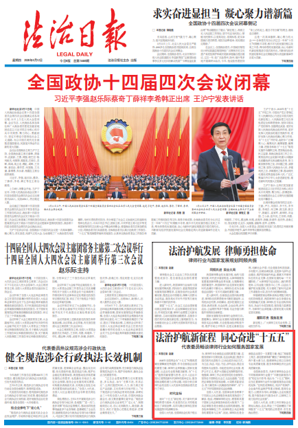 2026年全国两会为“十五五”时期高质量发展擘画宏伟蓝图。作为全面依法治国的重要力量,律师行业积极融入国家发展战略,从法治专业视角建言献策,为“十五五”蓝图贡献智慧与思考。近日,《法治日报》记者围绕新时代律师的使命定位、服务国家战略的着力点等话题,对部分来自律师行业的全国人大代表和全国政协委员进行了采访。