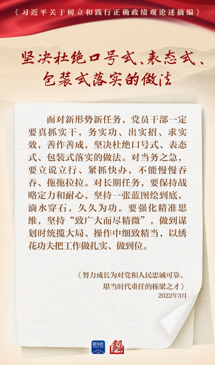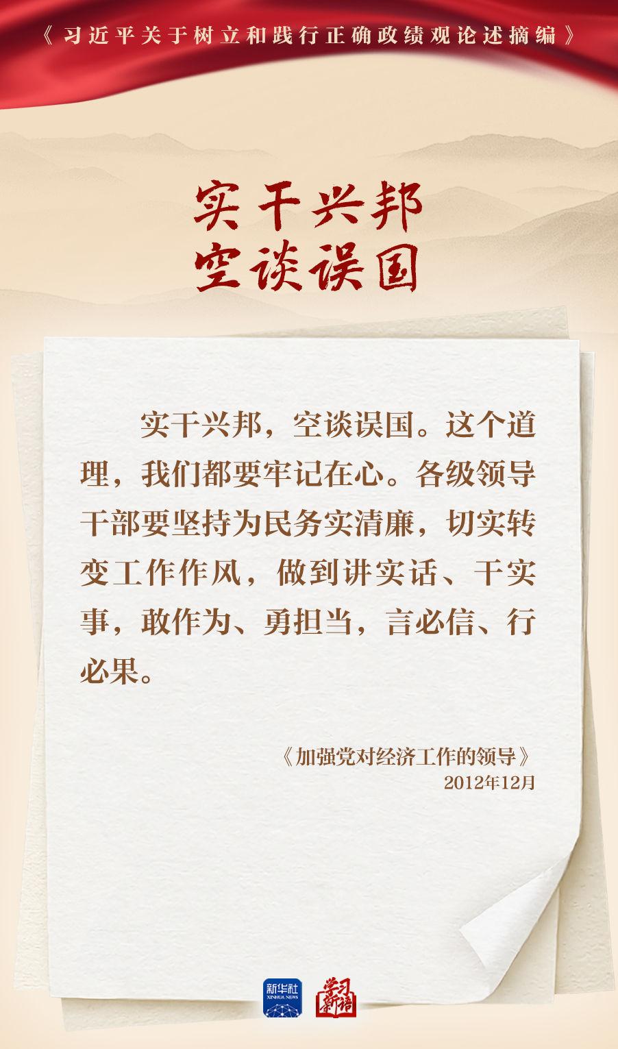 树立和践行正确政绩观学习教育正在全党开展。真抓实干,是共产党人的鲜明品格,也是成事之道。我们选取《习近平关于树立和践行正确政绩观论述摘编》一书中的相关重要论述,一起学习领会。