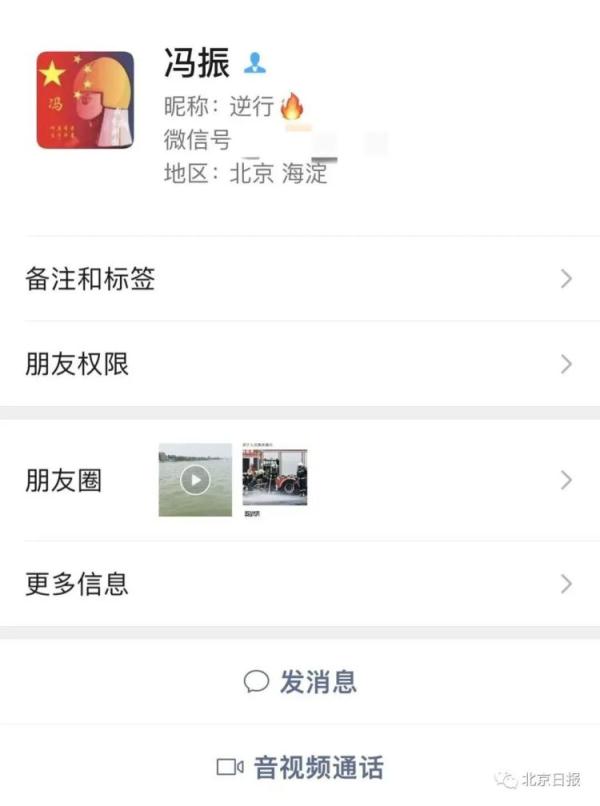 冯振的微信昵称叫“逆行”