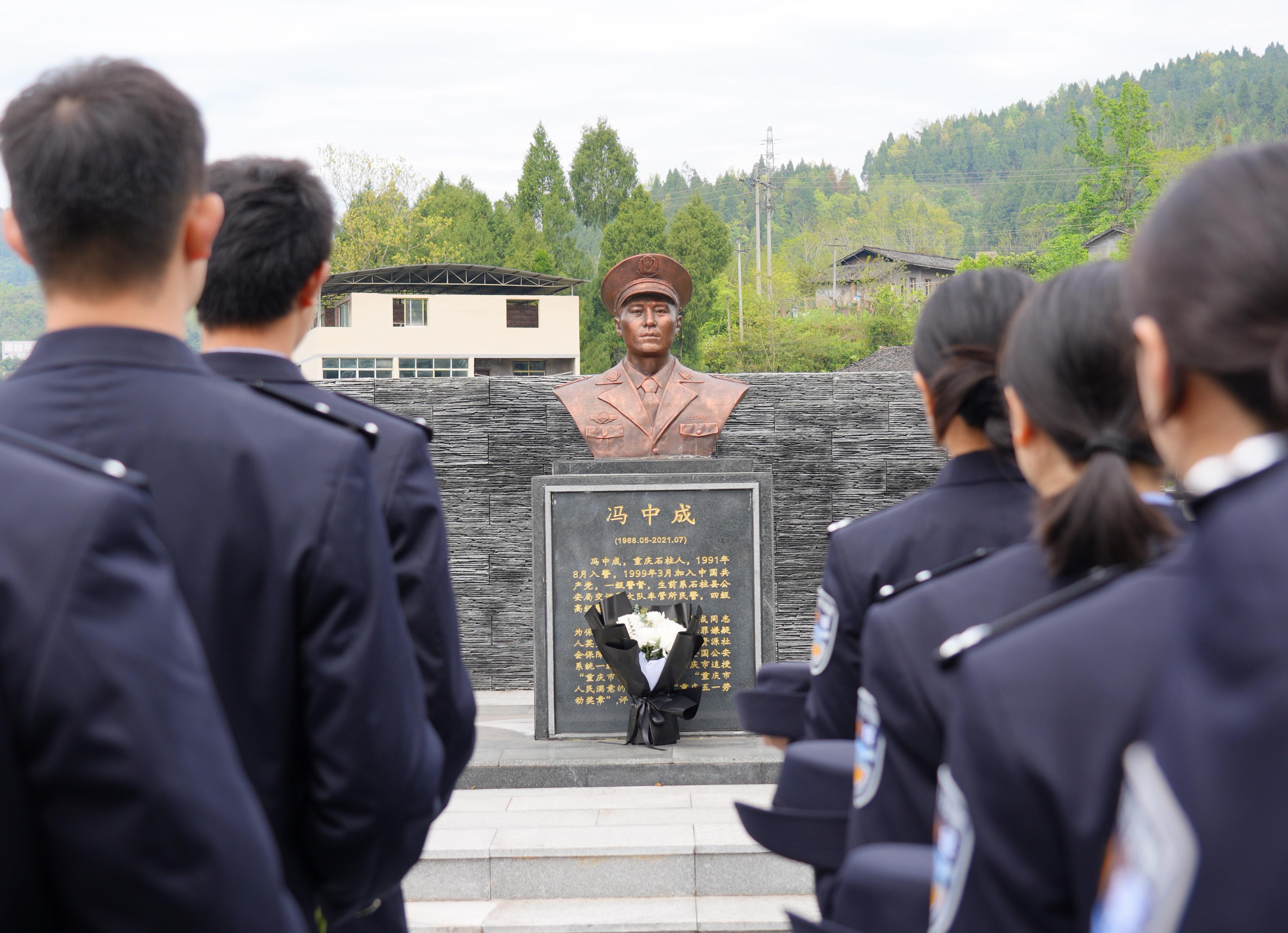“爸爸,我们又来看您了……”4月1日,冯中成的女儿、两江新区分局民警冯心言与分局同事及石柱县公安局民警一同来到冯中成烈士墓前祭扫缅怀,言语间饱含思念。在冯中成烈士纪念馆,两江新区、石柱县两地民警瞻仰冯中成生前工作、学习、生活的珍贵图片和实物资料,追忆烈士光荣事迹,并座谈交流学习英烈事迹的体会感悟。