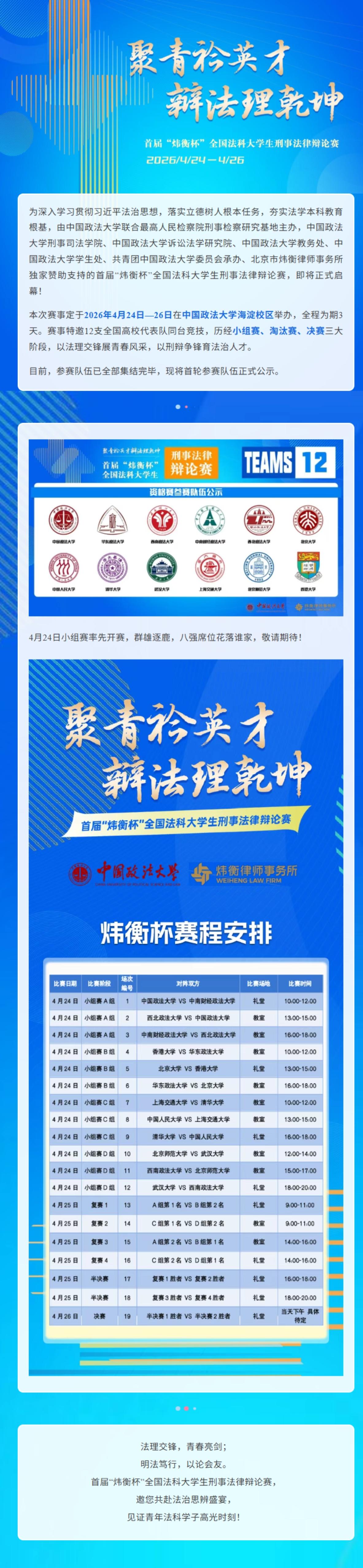 首轮预告|首届“炜衡杯”全国法科大学生刑事法律辩论赛参赛队伍暨赛程安排公示