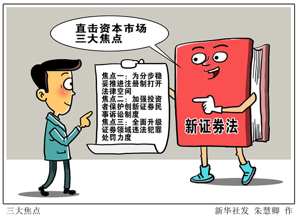 新修改的证券法12月28日在十三届全国人大常委会第十五次会议闭幕会上表决通过。历时四年多、历经全国人大常委会四次审议后,证券法终于完成大修。新证券法直击资本市场焦点问题,在证券发行制度、投资者保护、法律责任等方面进行了完善。
