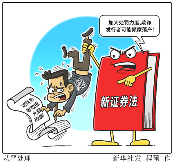 新修改的证券法12月28日在十三届全国人大常委会第十五次会议闭幕会上表决通过。针对市场深恶痛绝的欺诈发行行为,新证券法大幅加大了处罚力度。
