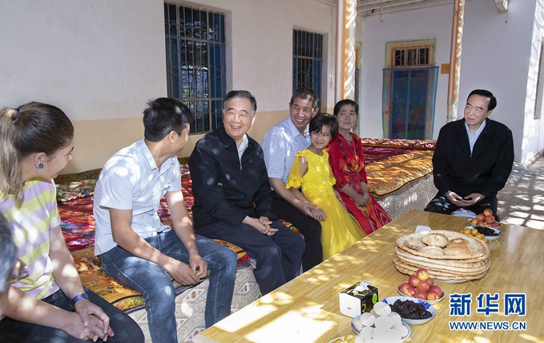 6月8日至12日,中共中央政治局常委、全国政协主席汪洋在新疆调研。这是6月11日,汪洋在喀什调研时与当地村民亲切交谈。 新华社记者 李涛 摄