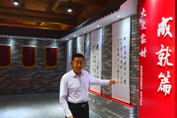 毕生忠代表在大史家村光荣历史展览馆介绍农村奋斗史。摄影/李贝贝