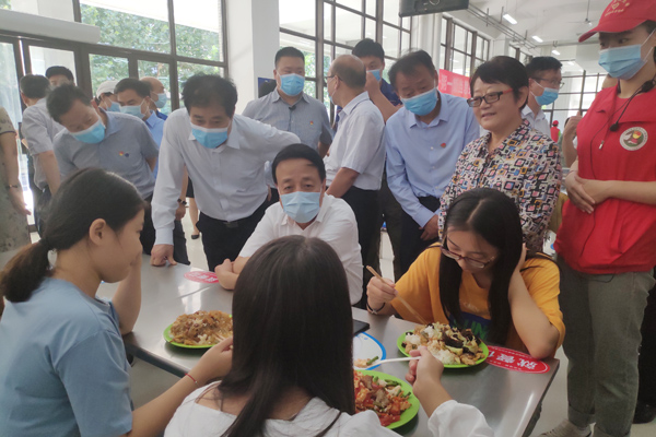 9月12日,武维华副委员长率全国人大常委会调研组在河南农业大学学生食堂了解杜绝粮食和食品浪费情况。摄影/王瀚