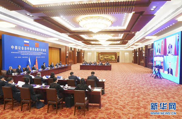 全国人大常委会委员长栗战书2日在北京人民大会堂出席中俄议会合作委员会第六次会议视频会议开幕式并致辞。