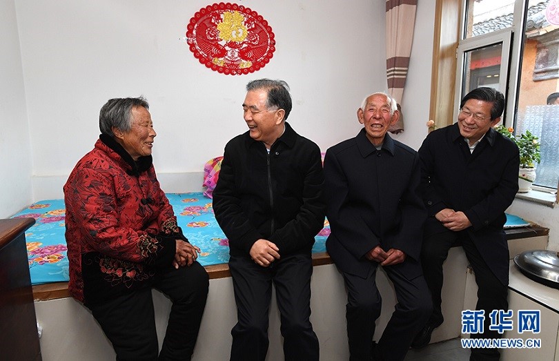 中共中央政治局常委、全国政协主席汪洋近日在河北调研脱贫攻坚工作。这是11月3日,汪洋在阜平县看望慰问脱贫群众。 新华社记者 饶爱民 摄