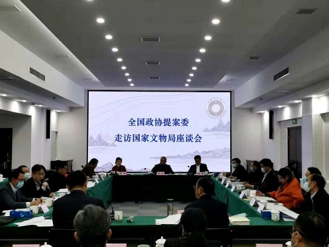 国家文物局党组副书记、副局长顾玉才主持会议,全国政协提案委员会驻会副主任陈因介绍走访来意,国家文物局副局长关强介绍提案办理工作总体情况及有关重点提案办理情况。委员、提案者代表和民主党派中央代表围绕深化文物利用体制机制改革、革命文物保护、文物保护法修订、让文物“活”起来、提升数字化文物保护水平、流失文物追索返还、从业人员培训等问题,与文化和旅游部、国家文物局相关司局同志互动交流。