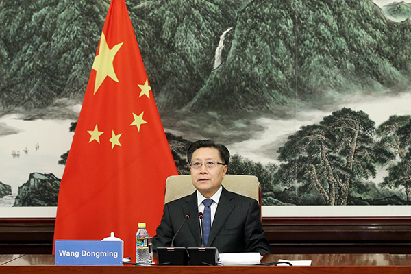 王东明与新加坡副议长迪舒沙举行视频会晤【我要纠错】【字体:大 默认 小】【打印】【关闭】来源:新华社发布时间:2020-12-01 09:05:00原标题:王东明与新加坡国会副议长迪舒沙举行视频会晤11月27日,全国人大常委会副委员长王东明与新加坡国会副议长迪舒沙举行视频会晤。许麟 摄全国人大常委会副委员长王东明27日在京与新加坡国会副议长迪舒沙举行视频会晤。双方就立法机构助力抗疫与发展合作,推动共建“一带一路”,促进两国关系发展交换了意见。中方还介绍了中共十九届五中全会对中国未来发展作出的规划。责任编辑:张红兵