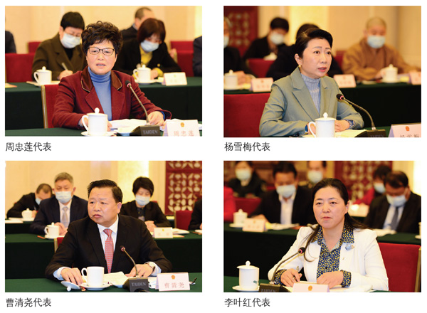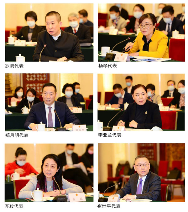 图为参加座谈会发言的全国人大代表。摄影/马增科