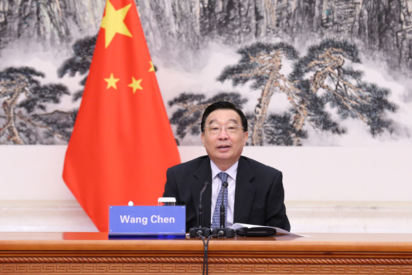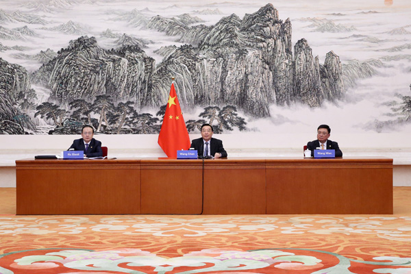 1月13日,中共中央政治局委员、全国人大常委会副委员长王晨在京与匈牙利国会常务副主席玛特劳伊举行视频会晤。毕楠 摄