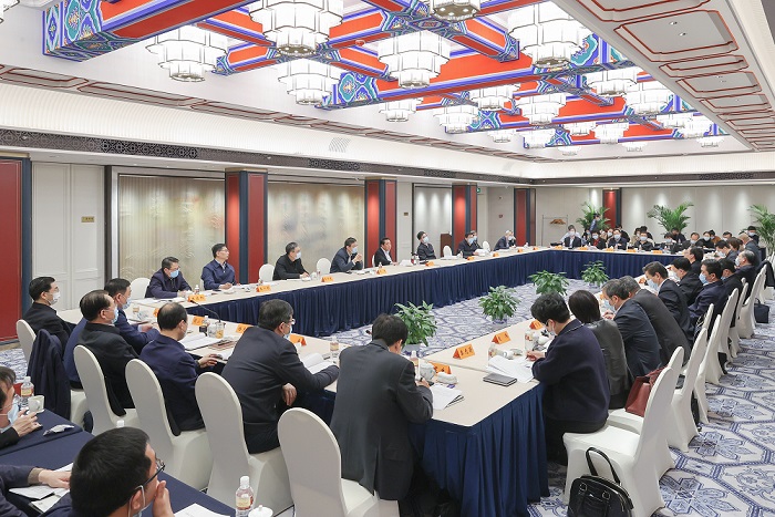 会上,担任江苏省政府组成部门主要负责人的8位全国人大代表和12个江苏省有关部门负责同志介绍了议案建议准备工作情况及阶段性成果、9位全国人大代表结合工作实际分别发言。会议就聚焦支持江苏苏南地区创建区域现代化建设示范区、协同推进沿沪宁产业创新带发展、着力打造长三角世界级先进制造业集群、加快构建以企业为主体的创新体系、切实促进后疫情时期文旅产业全面复苏、健全完善养老服务体系、加强乡土人才队伍建设助力乡村振兴等方面的选题进行了深入交流。